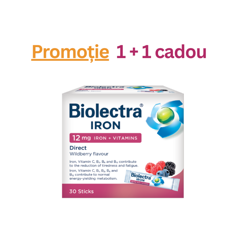 30 plicuri cu cate 1400 mg granule orodispersabile, cu aroma de fructe de padure. Cu fier, vitamina C, vitaminele B1, B2, B6 si B12.